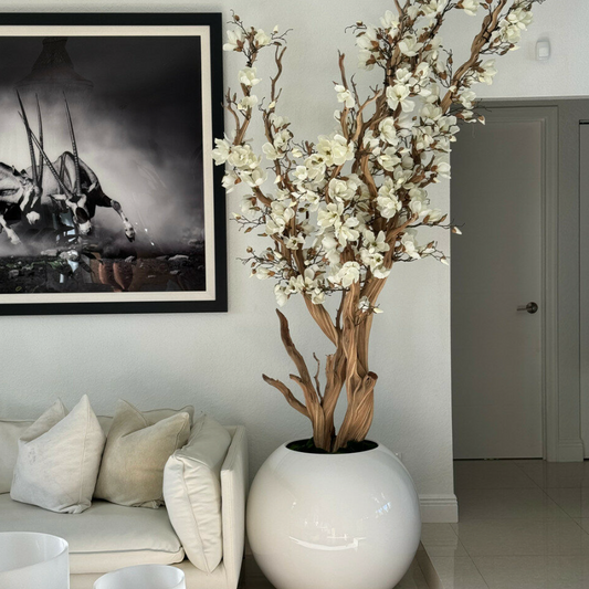 White Magnolia Tree in 76 cm Glossy White Globe Planter