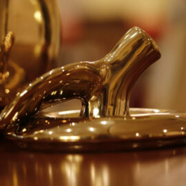 Made of ceramic with a luxurious gold finish, this beautiful scented candle is hand filled with soy wax, all natural essential oils and cotton wicks that offer a clean burn. A bold scented candle made to be put on display as a statement piece.