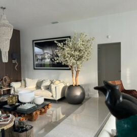 Cherry blossoms are a symbolic flower of the spring, a time of renewal, and the fleeting nature of life. Anchored in our matte gun metal 30″ globe vase which showcases a basic spherical shape, only with a modern twist. The full globe shape is the quintessential mix of traditional and contemporary styles as the round planters easily compliment any space around the home, garden or office. Its size and shape provide a perfect canvas for a our large white cherry blossom tree. Each tree is a one of a kind, flowers are placed by hand by our skilled artisans onto large wood trunks of California mountain wood. This bouquet of elegant white cherry adds a fresh and stylish touch to any room.
